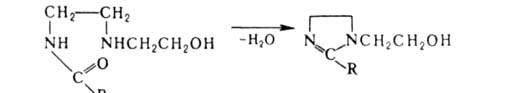 где R-алкил или ацил. N-Ациламиноэтилэтаноламины при нагр. (190°С; 10мм