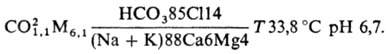 Физ. свойства и хим. состав минеральные воды изображают в виде ф-лы, в начале которой приводится содержание газа (СО2, H2S и др.) и специфич. биологически активных компонентов (Br, I, Fe, As и др.) в г/л, радиоактивность в нанокюри/л (1 кюри = = 3,7.1010 распадов в секунду) и общая минерализация (М) в г/л. Преобладающие ионы записывают в виде условной дроби, в числителе которой перечислены анионы, в знаменателе-катионы (%). В конце ф-лы указывается температура воды на выходе из источника (°С) и величина рН. Напр., для минеральные воды боржоми ф-ла записывается след. образом:
