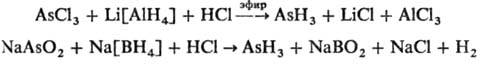 Получают AsH3 кислым гидролизом арсенидов Mg, Zn и др., восстановлением соед. As водородом, взаимод. галогенидов As или др. соед. As с Li[AlH4], Na[BH4] или др. гидридами. например: